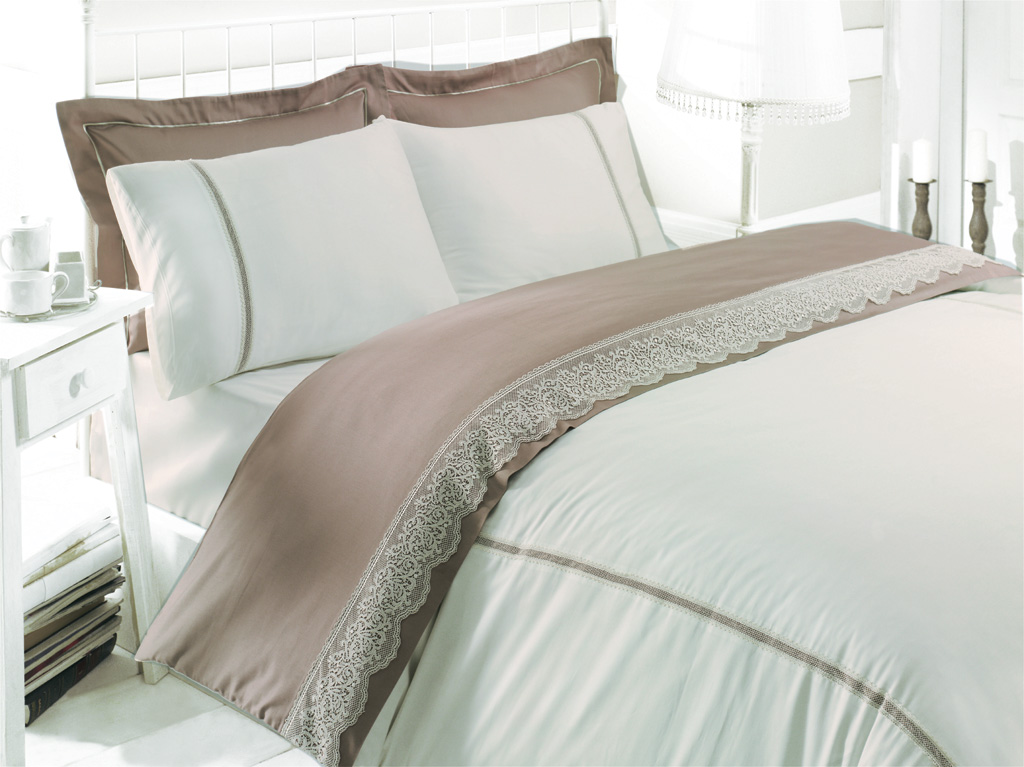 Saténová súprava posteľnej bielizne s krajkou