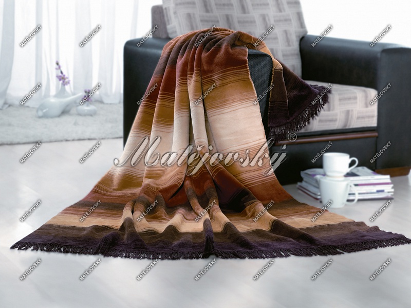 Deka je olemovaná lemovkou (bez strapcov).