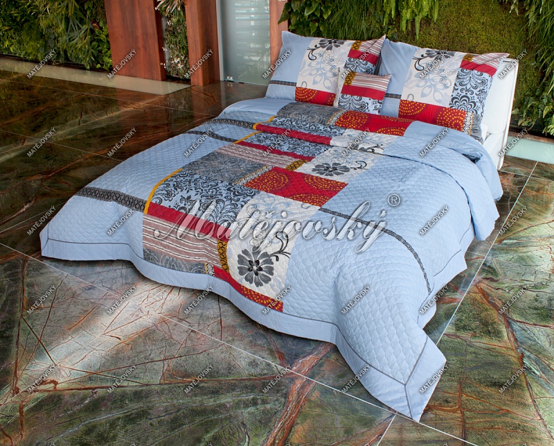 Prehoz sa skladá z prešívanej povrchovej látky 100% bavlna a výplne z dutého vlákna 100% polyester.
