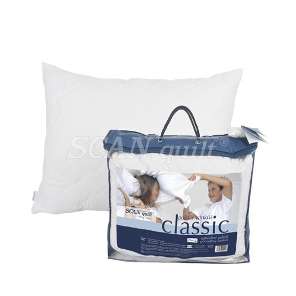 Vankúš CLASSIC patrí k našim najpredávanejším vankúšom. Jemné vlákna v tvare vločky sú nafúkané do prešitého návleku, ktorý má pri rozmeroch 70 x 90 cm, 50 x 70 cm a 45 x 90 cm aj zips kvôli možnosti regulácie množstva výplne. Vankúš CLASSIC je vhodný k typom prikrývok CLASSIC, DUPLEX PLUS, alebo THERMO PLUS. Povrchová tkanina je zo zmesového materiálu, ktorý má ideálne úžitkové vlastnosti, je pevný, ľahký, príjemný na dotyk a dostatočne splývavý.