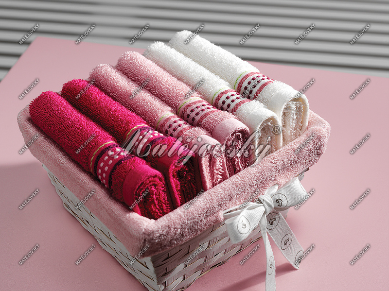 6x uterák v rozmere 30x50cm, 2x malinová, 2x svetlo ružová 2x biela farba.