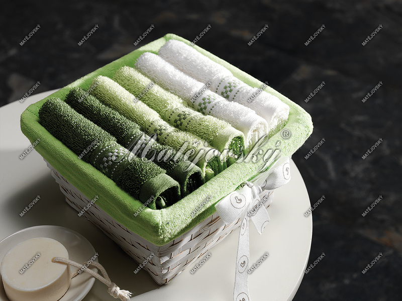 6x uterák v rozmere 30x50cm, 2x fľašková zelená , 2x svetlo zelená, 2x biela farba.