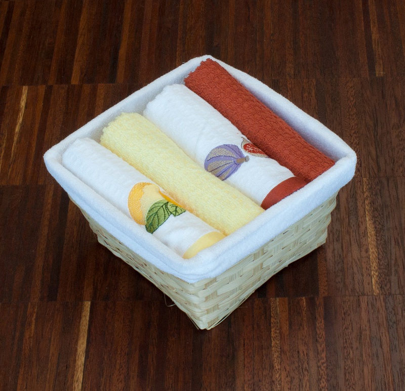 Sety: vždy 2 a 2 utierky o rozmere 40x70cm v prútenom košíku.